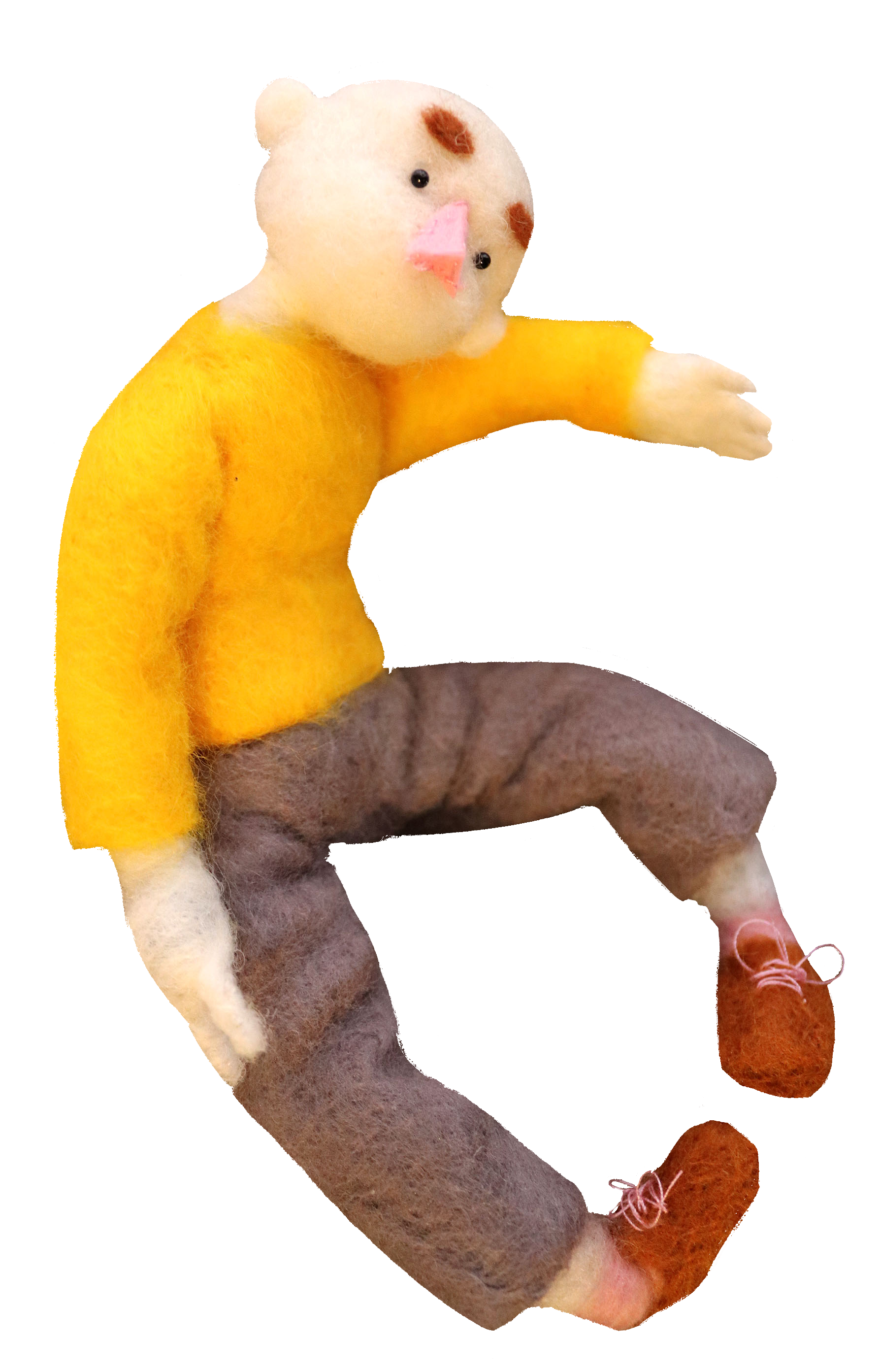 Above is a spread I worked on for David Crow’s latest edition of Visible Signs: An Introduction to Semiotics in the Visual Arts. Opening chapter 6 Symbolic Creativity with a Needle-felt person. The Needle-felted character has a wire armature inside which I posed in the shape of the chapter number.